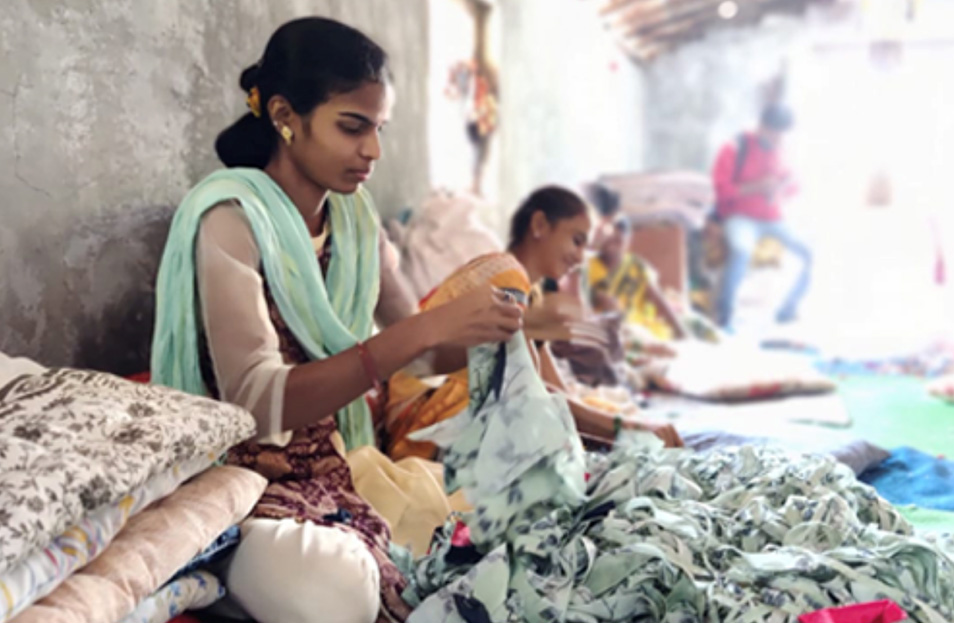 TEXTILE WASTE MANAGEMENT The Anita Dongre Foundation is committed to helping provide sustained employment to women through collaborations with organisations like Goonj and NEPRA, and with our local tailoring unit in Modgaon in Plaghar district. These women help upcycle the fabric waste generated in the clothing manufacturing process into godharis, carry bags and reusable masks which later go towards the aid of people and animals in need and as items to be sold in local markets.