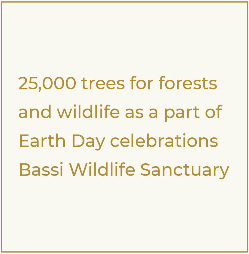 TREE PLANTATION DRIVE We have supported the planting of 25,000 trees for forests and wildlife as a part of Earth Day celebrations in April 2018 in collaboration with GROW-TREES.COM at Bassi Wildlife Sanctuary in the Chittorgarh district of Rajasthan (India) coupled with a unique consumer engagement campaign.